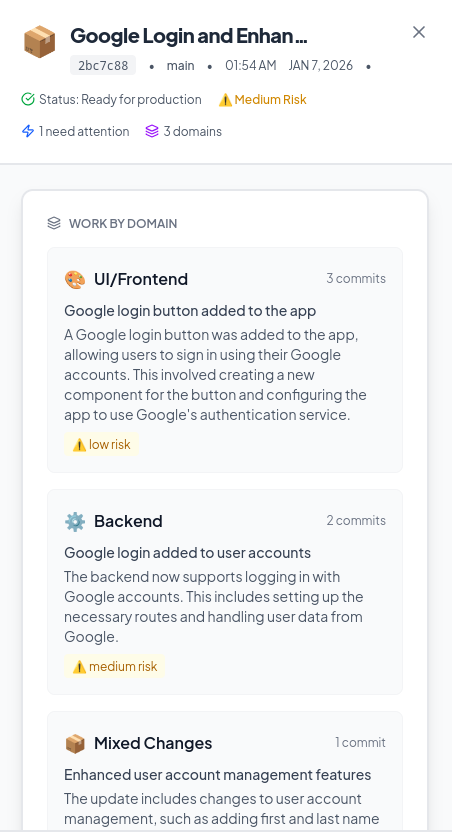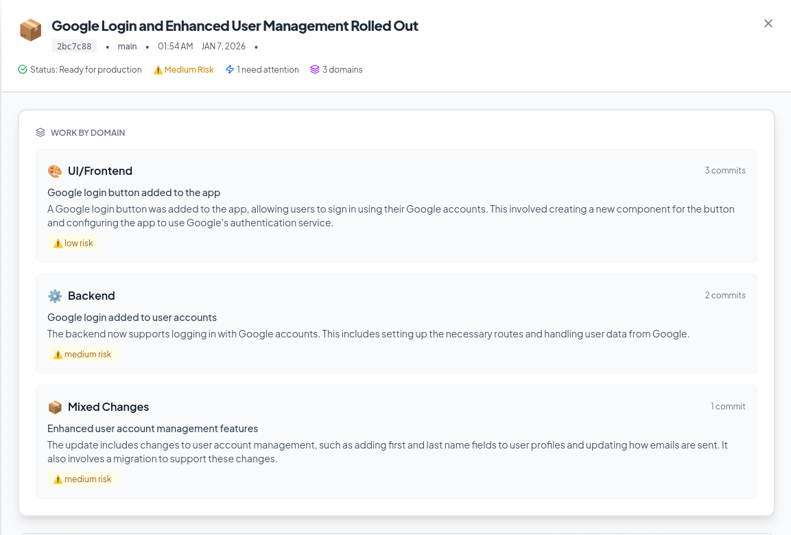 Every time they push code, you get a clear explanation of what changed, why it matters, and what's next.